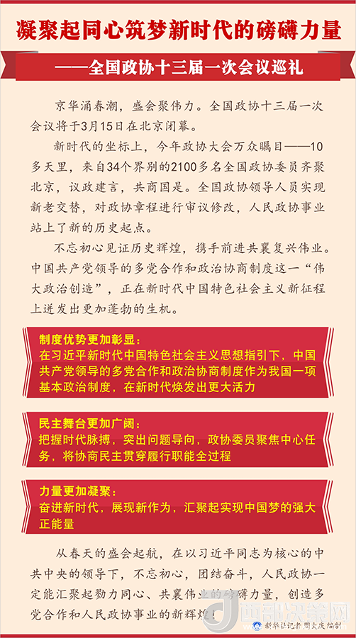 京華涌春潮,盛會(huì)聚偉力。全國(guó)政協(xié)十三屆一次會(huì)議將于3月15日在北京閉幕。
