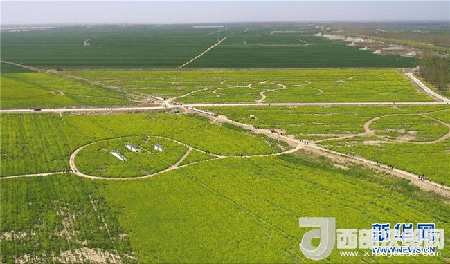 4月7日,游客在河南省封丘縣曹崗鄉(xiāng)的油菜花海中踏青賞花。