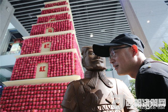展館里3000多個(gè)陜西大蘋果堆出的大雁塔格外醒目,兵馬俑機(jī)器人作為陜西蘋果宣傳大使,能回答觀眾提出的各種問題,尤其是陜西蘋果方面的問題,沒有它回答不出來的。