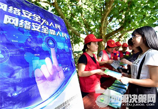河北省廊坊市安次區(qū)網(wǎng)信辦工作人員和志愿者向?qū)W生們發(fā)放網(wǎng)絡(luò)安全宣傳折頁(yè),倡導(dǎo)廣大師生提高網(wǎng)絡(luò)安全意識(shí),共同維護(hù)網(wǎng)絡(luò)社會(huì)秩序(2017年9月19日攝)。新華社記者 王曉 攝