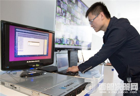 在北京智能計(jì)算產(chǎn)業(yè)研究院舉行的發(fā)布會(huì)上,工作人員在現(xiàn)場(chǎng)演示高通量人工智能一體機(jī)的實(shí)際應(yīng)用(2017年12月6日攝)。新華社記者 金立旺 攝