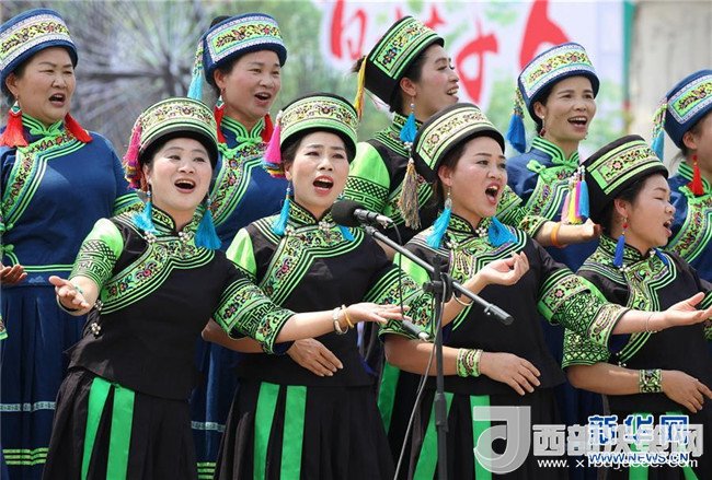 4月18日,在廣西百色市隆林各族自治縣舉辦的“三月三”歌會上,人們演唱山歌。新華社發(fā)(林斌 攝)