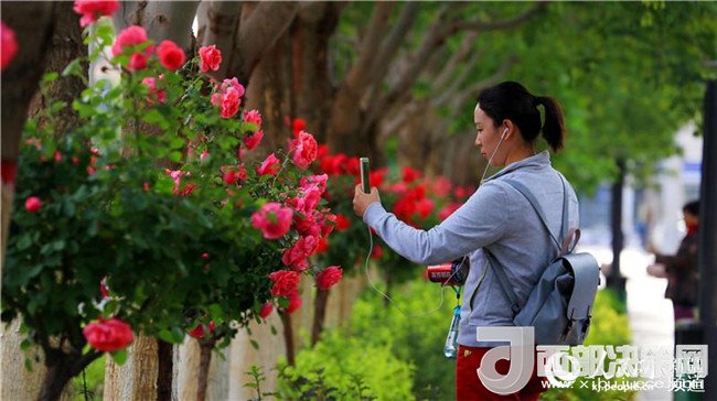 漫步在友好路兩側的人行道上,青青垂柳遮住了太陽的熾熱,垂柳上的許愿帶隨風飄蕩,五顏六色的玫瑰花光彩奪目,空氣中都是夏天的味道。這里的人們都已經換上的夏天的衣服,小孩子在老人和父母的陪伴下在這里納涼賞花,過往的路人時不時拿出手機和玫瑰花拍照留影。(李靖海、吳雙、胡國凱)