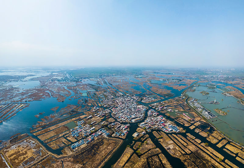 這是白洋淀中的村莊(3月29日無人機(jī)拍攝)。新華社記者 沈伯韓 攝