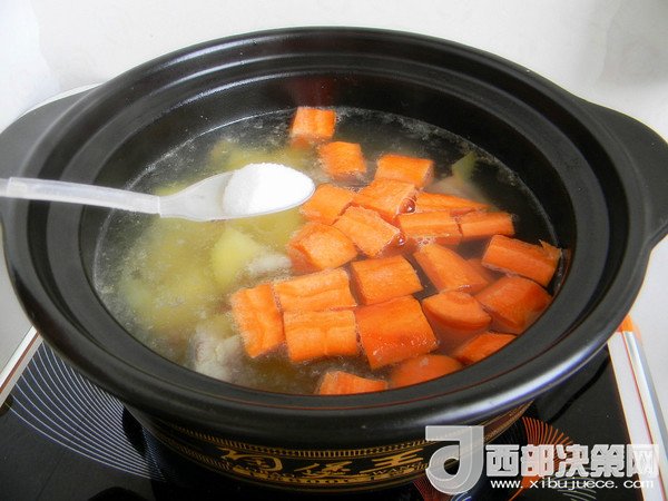 5.20分鐘后飯盒攻入土豆塊和胡蘿卜塊