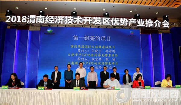 省質(zhì)監(jiān)局質(zhì)量監(jiān)督處處長(zhǎng)張泉生,市食藥局黨組書記、局長(zhǎng)王建軍,市商務(wù)局副局長(zhǎng)李爭(zhēng)良、市工信局副局長(zhǎng)孟宗憲,市外經(jīng)局副局長(zhǎng)郭向陽(yáng)、市質(zhì)監(jiān)局總工程師井西娥等省市領(lǐng)導(dǎo)出席推介會(huì)并見簽。經(jīng)開區(qū)黨群工作部部長(zhǎng)閆曉宇,管委會(huì)副主任段宏偉、馬俊玲上臺(tái)簽約。此次簽約的項(xiàng)目包括有總投資30億元的國(guó)藥健康文旅城項(xiàng)目,總投資1億元的大能年產(chǎn)2萬噸醫(yī)藥蕎麥酵素項(xiàng)目,總投資3億元的陜西順天年2萬噸農(nóng)用酵素項(xiàng)目;總投資1.2億元的年產(chǎn)1萬噸功能性酵素和酵素飲品項(xiàng)目、總投資8000萬元的陜西宜康神年產(chǎn)5000噸蘆薈酵素項(xiàng)目和總投資6000萬元的陜西弘康生物科技股份有限公司特色植物提取項(xiàng)目;總投資8000萬元的綠盛農(nóng)業(yè)科技有限責(zé)任公司農(nóng)用酵素運(yùn)營(yíng)示范中心項(xiàng)目、總投資5400萬元的信德緣復(fù)合果蔬酵素項(xiàng)目和總投資6000萬元的渭南市藥材公司年產(chǎn)1000噸葡萄酵素項(xiàng)目。