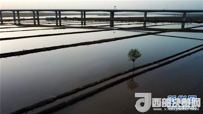 近日,寧夏黃河灌區(qū)百萬(wàn)畝水稻種植區(qū)進(jìn)入插秧季節(jié),黃河岸邊,塊塊稻田水滿欲溢,在初夏夕陽(yáng)的映照下猶如明鏡,一派生機(jī)盎然的景象。