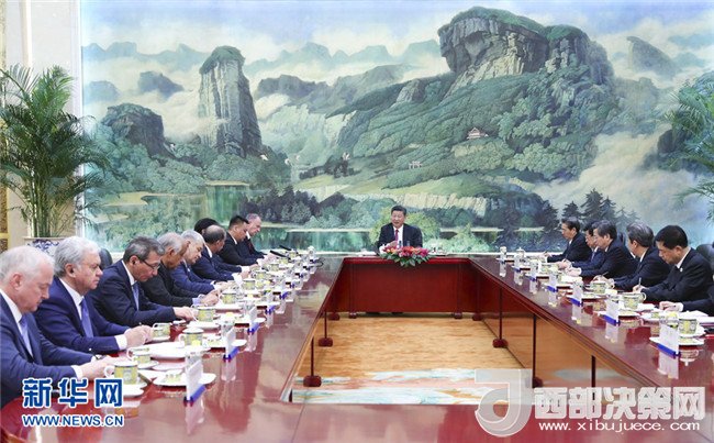 國家主席習(xí)近平22日在人民大會堂集體會見來華出席上海合作組織成員國安全會議秘書第十三次會議的外方代表團(tuán)團(tuán)長。