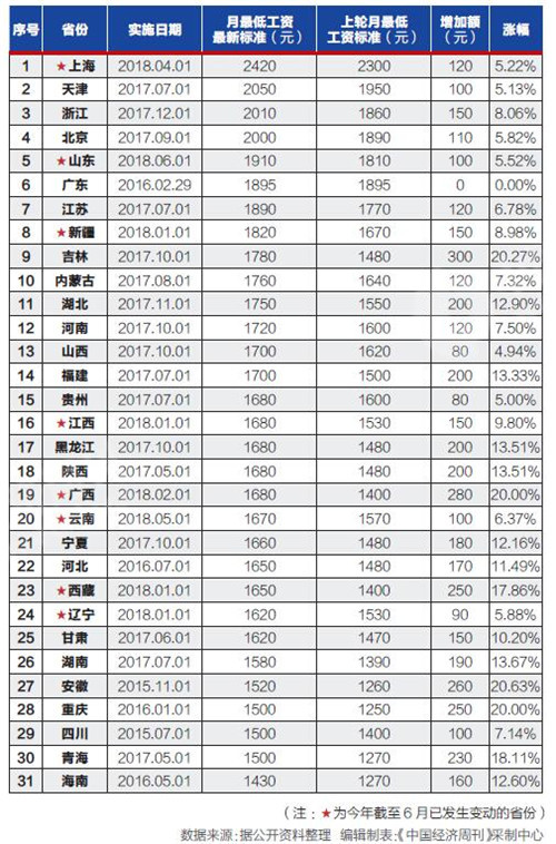 2018年你所在的省份最低工資標準調(diào)整了嗎?