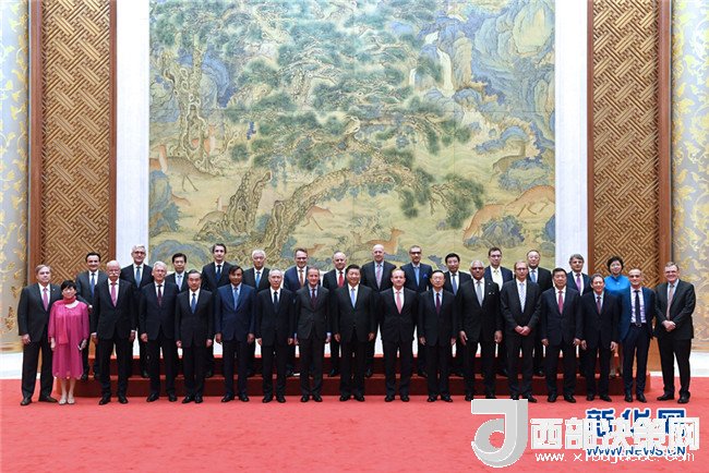 6月21日,國家主席習(xí)近平在北京釣魚臺(tái)國賓館會(huì)見來華出席“全球首席執(zhí)行官委員會(huì)”特別圓桌峰會(huì)的知名跨國企業(yè)負(fù)責(zé)人,并同他們座談交流。新華社記者饒愛民攝