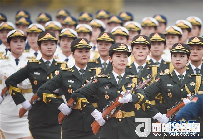 6月6日下午,國家主席習(xí)近平在人民大會堂東門外廣場舉行儀式,歡迎吉爾吉斯斯坦總統(tǒng)熱恩別科夫?qū)χ袊M(jìn)行國事訪問。這是在歡迎儀式上首次增加的三軍儀仗隊女兵方陣。新華社記者 陳曄華 攝