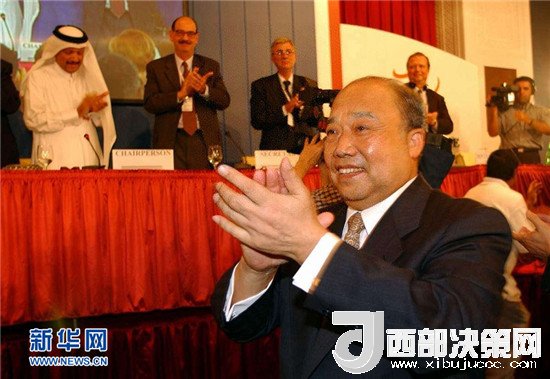 2001年11月10日,世界貿(mào)易組織第四屆部長級會議在卡塔爾首都多哈以全體協(xié)商一致的方式,審議并通過了中國加入世貿(mào)組織的決定。這是決定通過后,時任中國政府代表團(tuán)團(tuán)長、外經(jīng)貿(mào)部部長石廣生與其他與會者鼓掌慶賀。新華社記者 王建華 攝