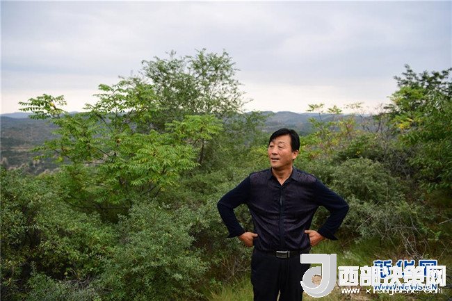 閆志雄在陜西延安市吳起縣南溝村的山坡上遠眺一片綠色的山林(2017年9月13日攝)。閆志雄帶領(lǐng)村民植樹造林,百折不撓,成為這個“退耕還林第一縣”的“綠色革命”先鋒。新華社記者 邵瑞 攝