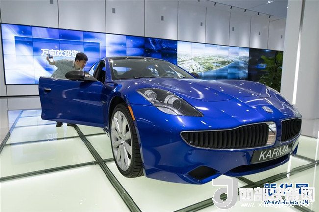 2018年7月4日,一名參觀者在觀看萬向集團(tuán)旗下公司研發(fā)的、在北美地區(qū)上市的KARMA混動跑車。新華社記者沈伯韓攝