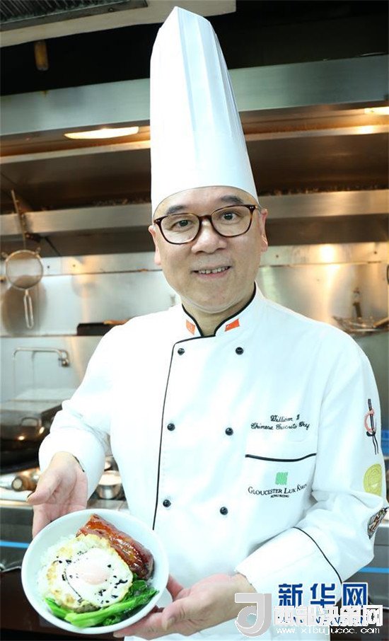 在香港六國酒店,香港中廚師協(xié)會(huì)會(huì)長馬榮德向記者展示他剛剛制作的“黯然銷魂飯”(6月14日攝)。新華社記者 萬后德 攝