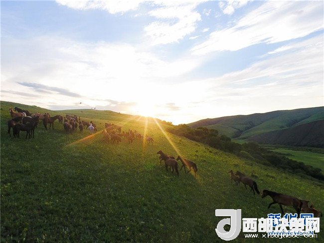 西烏珠穆沁旗草原上的馬群(7月23日無人機拍攝)。