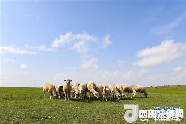 西烏珠穆沁旗的草原上,羊群在覓食(7月21日攝)。