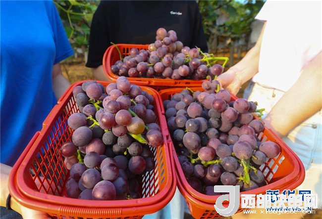 近日,江西省樟樹市現(xiàn)代農(nóng)業(yè)科技示范園內(nèi)的葡萄進(jìn)入采摘期,吸引眾多游客前來(lái)觀光、采摘。近年來(lái),該農(nóng)業(yè)園著力打造農(nóng)業(yè)科技示范與觀光度假為一體的旅游休閑項(xiàng)目,推動(dòng)農(nóng)業(yè)、旅游業(yè)雙發(fā)展。