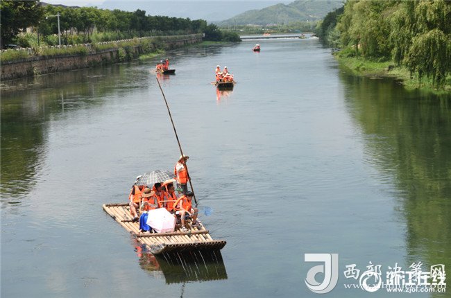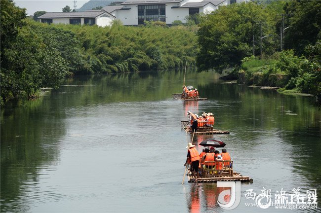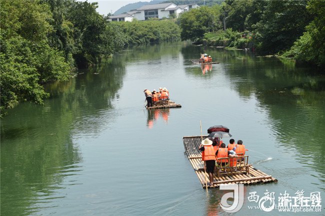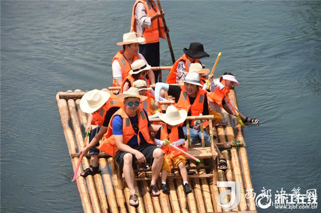 8月9日,杭州持續(xù)高溫,最高氣溫達(dá)36℃,酷熱難熬,在余杭雙溪漂流景區(qū),游客人數(shù)驟增,他們乘竹筏享受水上清涼。(浙江在線(xiàn)記者 吳元峰 攝)