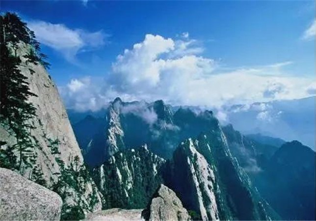 西峰海拔2082.6米,華山主峰之一,因位置居西得名。又因峰巔有巨石形狀好似蓮花瓣,古代文人多稱其為蓮花峰、芙蓉峰。袁宏道在他的《華山》中記述:“石葉上覆而橫裂”;徐霞客《游太華山日記》中也記述:“峰上石聳起,有石片覆其上,如荷花。”李白詩(shī)中有“石作蓮花云作臺(tái)”句,也當(dāng)指此石。