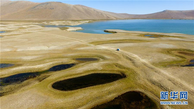 快遞車將網(wǎng)購的商品送到青河縣查干郭勒鄉(xiāng)薩爾布拉克村的牧場(8月24日無人機(jī)拍攝)。新華社記者江文耀攝