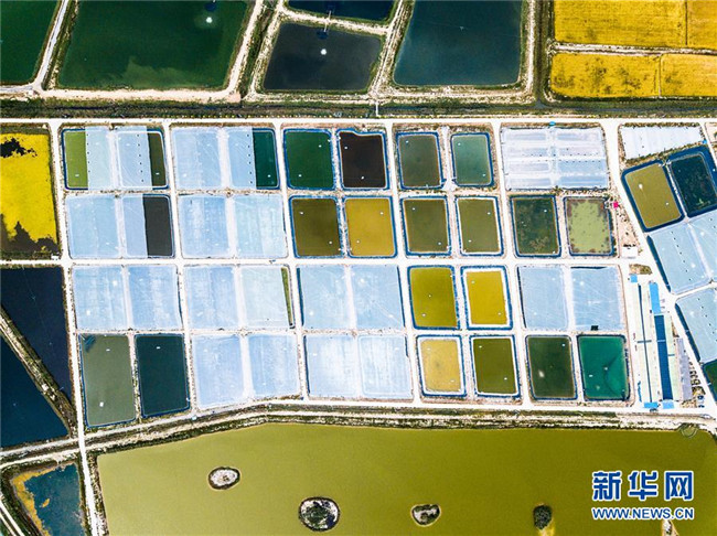 寧夏賀蘭縣藍(lán)灣生態(tài)園南美對(duì)蝦養(yǎng)殖基地(9月11日無人機(jī)拍攝)。 寧夏,地處中國西北腹地。這里的大山、大河、草原、沙漠、湖泊,猶如一幅幅美妙畫卷,讓人流連忘返。 新華社記者 王建華 攝