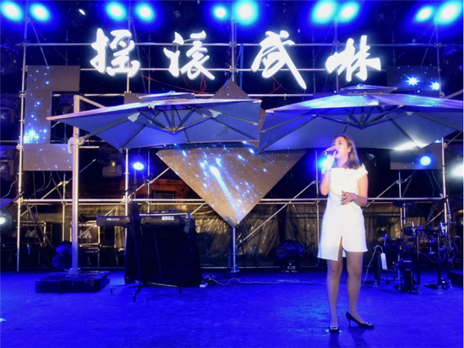 星空音樂趴于當(dāng)晚18時(shí)30分正式開始,在層巒聳翠中,浩瀚星辰下,由原創(chuàng)搖滾實(shí)效樂隊(duì)帶來的動(dòng)感音樂瞬間點(diǎn)燃全場(chǎng),華旅集團(tuán)營銷中心各位美女為大家?guī)韯?dòng)感現(xiàn)代舞,馬超武術(shù)表演隊(duì)伍更是展現(xiàn)了劍、九節(jié)鞭、棍、拳的華夏男兒力量之美,DJ、MC電音律動(dòng),現(xiàn)場(chǎng)聽眾更是融入其中,服裝上的熒光粉在夜空中也化作點(diǎn)點(diǎn)星光,與天、地、舞臺(tái)融為一體,撩人電音牽手活力運(yùn)動(dòng),燃爆初秋的第一把火!這是一個(gè)聞所未聞的華山“武林”。