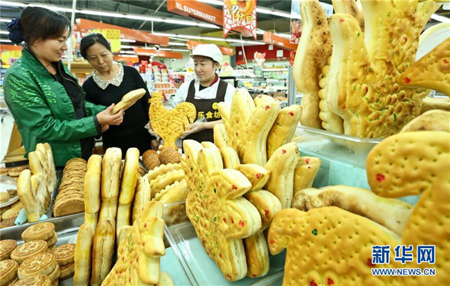 中秋節(jié)前制作“土月餅”是甘肅張掖的傳統(tǒng)習(xí)俗,至今已有千年歷史。“土月餅”用醒發(fā)后的面團做成各種造型,再經(jīng)烤制而成,物美價廉,深受市民歡迎。新華社發(fā)(王將 攝)