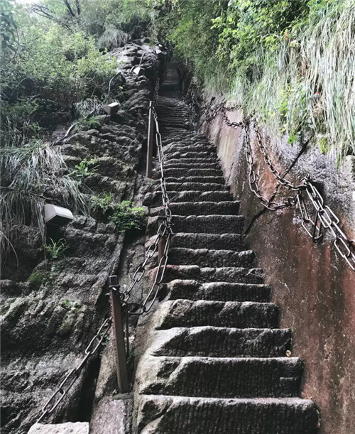 千尺幢:一條峭壁上的大裂縫,陷在兩旁的巨石之間,共370余級(jí)臺(tái)階,坡度極陡,每級(jí)臺(tái)階的寬度不過(guò)三分之一的腳掌。 俯視腳下,如臨深淵。