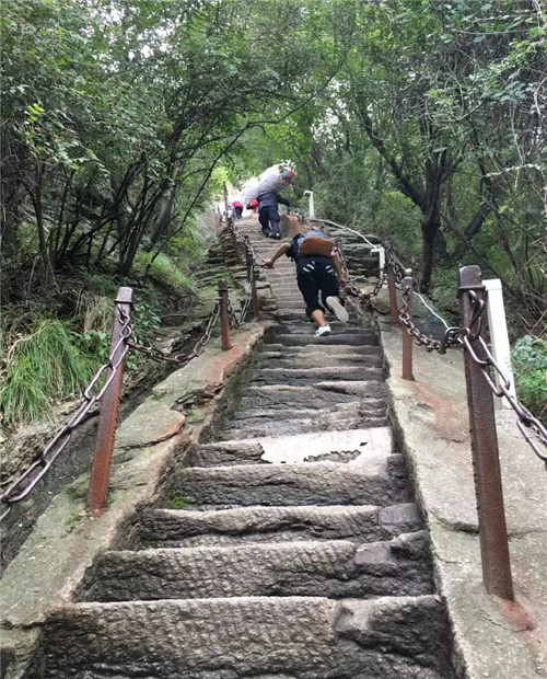 最虐的自古華山一條路,12.5公里的山路,9567級(jí)臺(tái)階。途經(jīng)玉泉院、千尺幢、百尺峽、老君犁溝、蒼龍嶺等經(jīng)典景點(diǎn)。