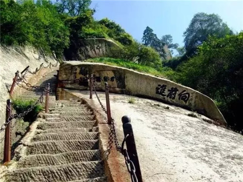 老君犁溝: "犁險(xiǎn)于幢,幢險(xiǎn)而犁突。"這描寫(xiě)的是夾在陡峭石壁之間一條深不可測(cè)的溝狀險(xiǎn)道,石階570多階。