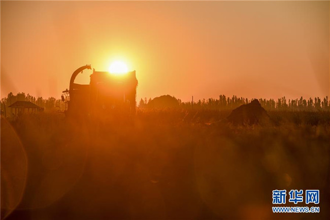 9月26日,收割機(jī)在新疆察布查爾錫伯自治縣種羊場(chǎng)的一處稻田收割水稻。眼下,地處新疆伊犁河谷的察布查爾錫伯自治縣約20萬畝水稻迎來收割季。當(dāng)?shù)剞r(nóng)民搶抓農(nóng)時(shí),忙碌在金色田園中。記者 胡虎虎 攝