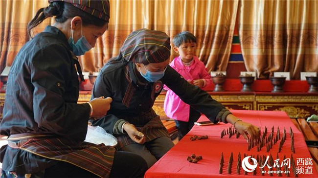 本波日山腳下、薩迦寺旁,一個大院兒里飄出藏香獨特的香味,一進(jìn)大院,有的在提取制作藏香的原材料、有的在手工制作藏香模型、有的在包裝藏香,這里的藏香大多線上銷售,遠(yuǎn)銷北京、上海、杭州等地,一年銷售額達(dá)到2000多萬元。