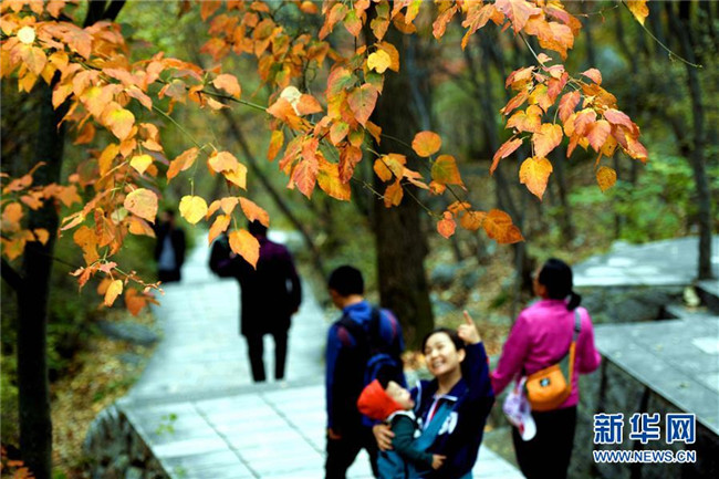 10月6日,游客在位于太行山東麓的靈壽縣五岳寨自然風景區(qū)內(nèi)游覽。新華社發(fā)(陳其保 攝)