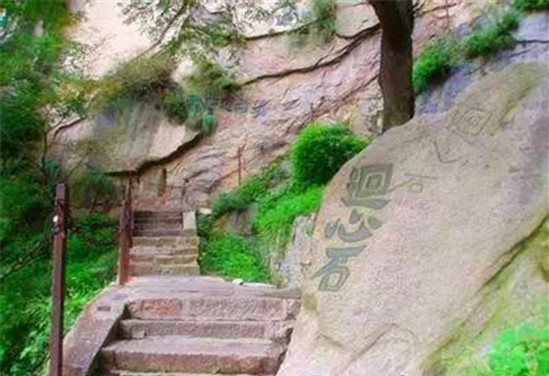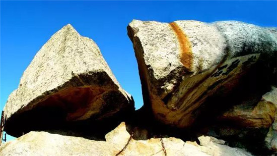 韓愈投書處:從北峰上行,過(guò)擦耳崖,爬天梯,就到了蒼龍嶺,這處地方就像它的名字一樣,仿佛是一條蒼龍用它的背脊架起了這條路,路面極之狹窄,若有人迎面擦肩而過(guò),最好大家互相背靠背遷就一下,免生危險(xiǎn)。蒼龍嶺的山脊上下高差約五百米,山坡傾斜度達(dá)45度,兩旁山谷,深不可測(cè),據(jù)說(shuō)唐代韓愈當(dāng)年上山到了此地,見(jiàn)山高勢(shì)險(xiǎn),以為自己必死無(wú)疑,于是寫下遺書,投往山下,所以大家會(huì)發(fā)現(xiàn)路旁一塊巨石之上,寫有“韓愈投書處”的字樣。
