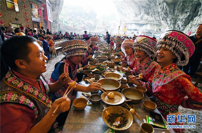 10月14日,興文石海世界地質(zhì)公園在園區(qū)內(nèi)擺起長(zhǎng)桌宴,迎接來(lái)自遠(yuǎn)方的賓客。