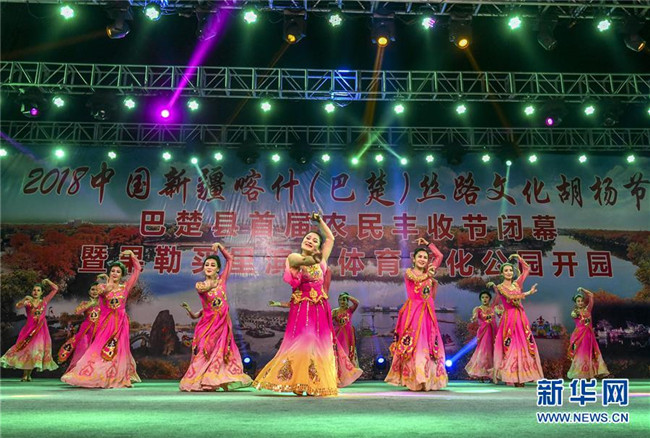 10月22日,演員在果勒買里村為游客和村民表演節(jié)目。 新疆巴楚縣阿納庫勒鄉(xiāng)果勒買里村緊鄰巴楚縣城,區(qū)位優(yōu)勢明顯。近年來,新疆維吾爾自治區(qū)體育局“訪民情”“惠民生”“聚民心”駐村工作隊幫助村里完善基礎設施和改善村容村貌,借助節(jié)慶活動大力發(fā)展鄉(xiāng)村旅游,吸引周邊及外地游客前來觀光休閑,既豐富了村民的文化生活,又為村民增收致富拓寬了門路。 新華社記者 胡虎虎 攝