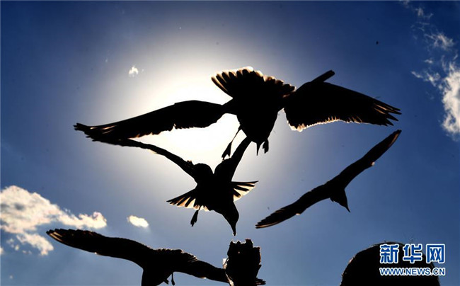入冬以來,數(shù)萬只紅嘴鷗成為云南昆明市一道亮麗的風景,它們翱翔在藍天下,在水面上覓食、游動,吸引眾多市民和游客前來觀賞拍照。新華社記者楊宗友攝