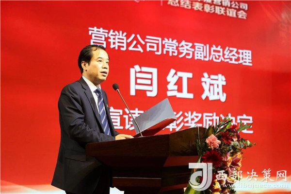 西鳳酒營銷公司常務副總經(jīng)理閆紅斌宣讀《關于對2018年度先進單位、先進個人給予表彰獎勵的決定》