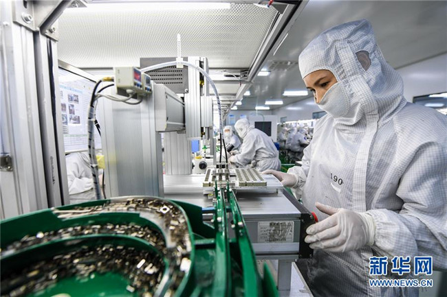 2月23日,在內(nèi)蒙古包頭市江馨微電機(jī)公司的生產(chǎn)線(xiàn)中,工作人員在展示微電機(jī)成品。新華社記者 彭源 攝