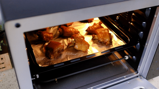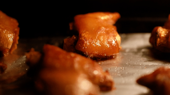 6.將烤盤上鋪上錫紙,并在錫紙上抹上一層薄薄的油,防止烤的時候豬蹄會粘在錫紙上,放上煮好的豬蹄。