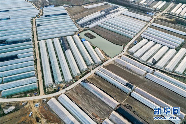 3月11日無人機拍攝的明光市管店鎮(zhèn)甜葉菊育苗扶貧基地一角。 新華社記者 曹力 攝