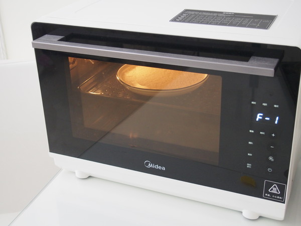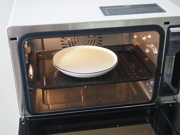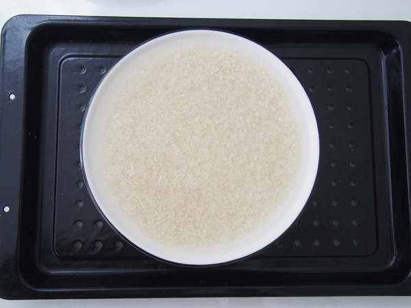 3.將大米放入美的S4蒸烤箱的蒸盤中,水箱加入足量的純凈水