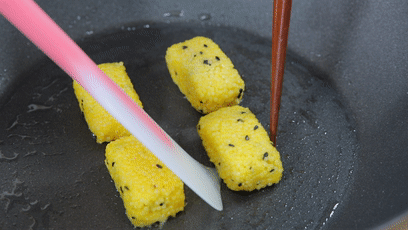 *這里和平時做小餅不一樣,四面都要翻,全部煎至金黃哈。