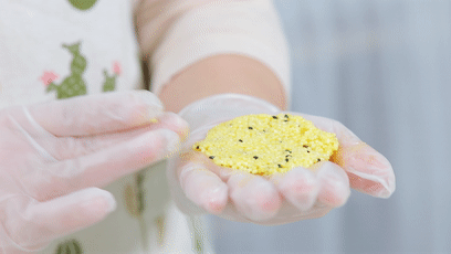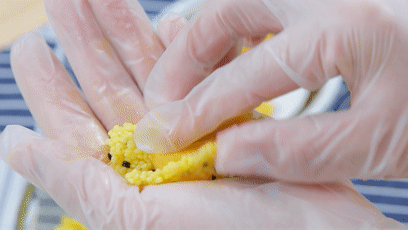 食材準備:小米飯70克、紅薯50克、黑芝麻2克、蛋黃1個