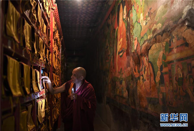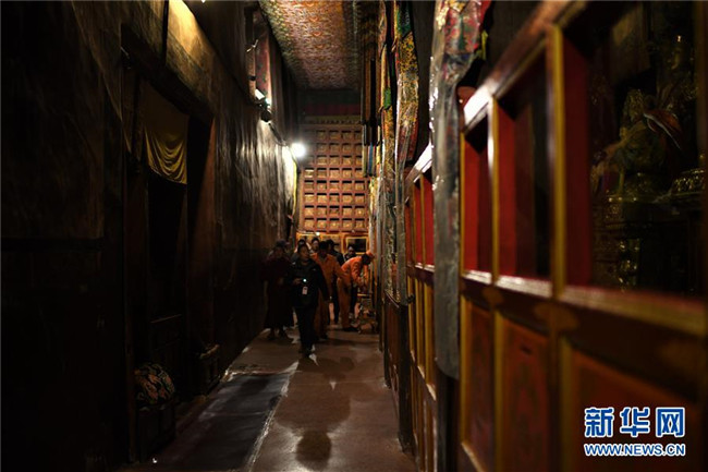 布達拉宮管理處的工作人員在殿堂值守(2018年11月15日攝)。  新華社記者 普布扎西 攝