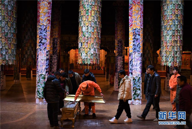 布達拉宮管理處的工作人員對佛像進行數字化存檔(2018年11月16日攝)。  新華社記者 普布扎西 攝