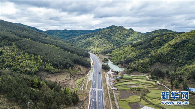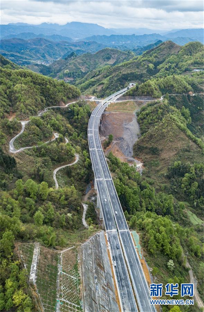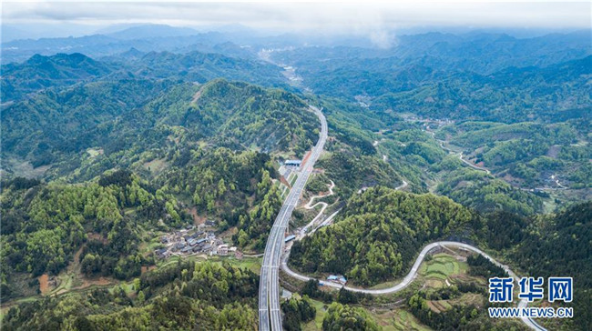 4月3日無人機拍攝的三荔高速周覃至水各路段。新華社記者 陶亮 攝