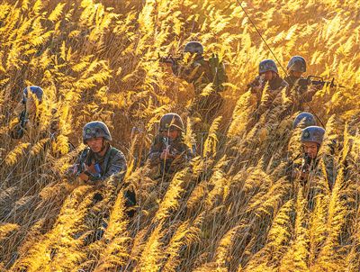 官兵在復雜地域開展戰(zhàn)術訓練。