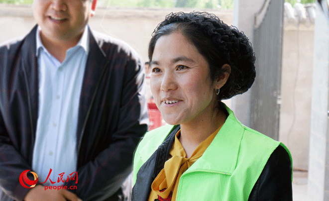 (扶貧搬遷戶黃曉燕不善言辭,在接受采訪時(shí)一直把感恩政府掛在嘴邊。人民網(wǎng) 張桂貴/攝)